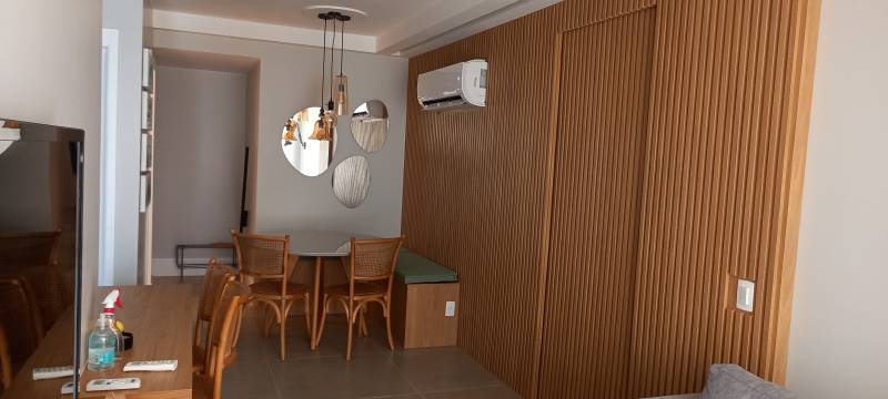 Descrições: Excelente apartamento NOVO 2 quartos, totalmente projetado, varandão com cortina de vidro, ar-condicionado split em todos ambientes, cozinha com armários, fogão cooktop, forno, porcelanato em todo imóvel, 2 quartos sendo 1 suíte, sala em dois ambientes, 1 vaga na garagem.