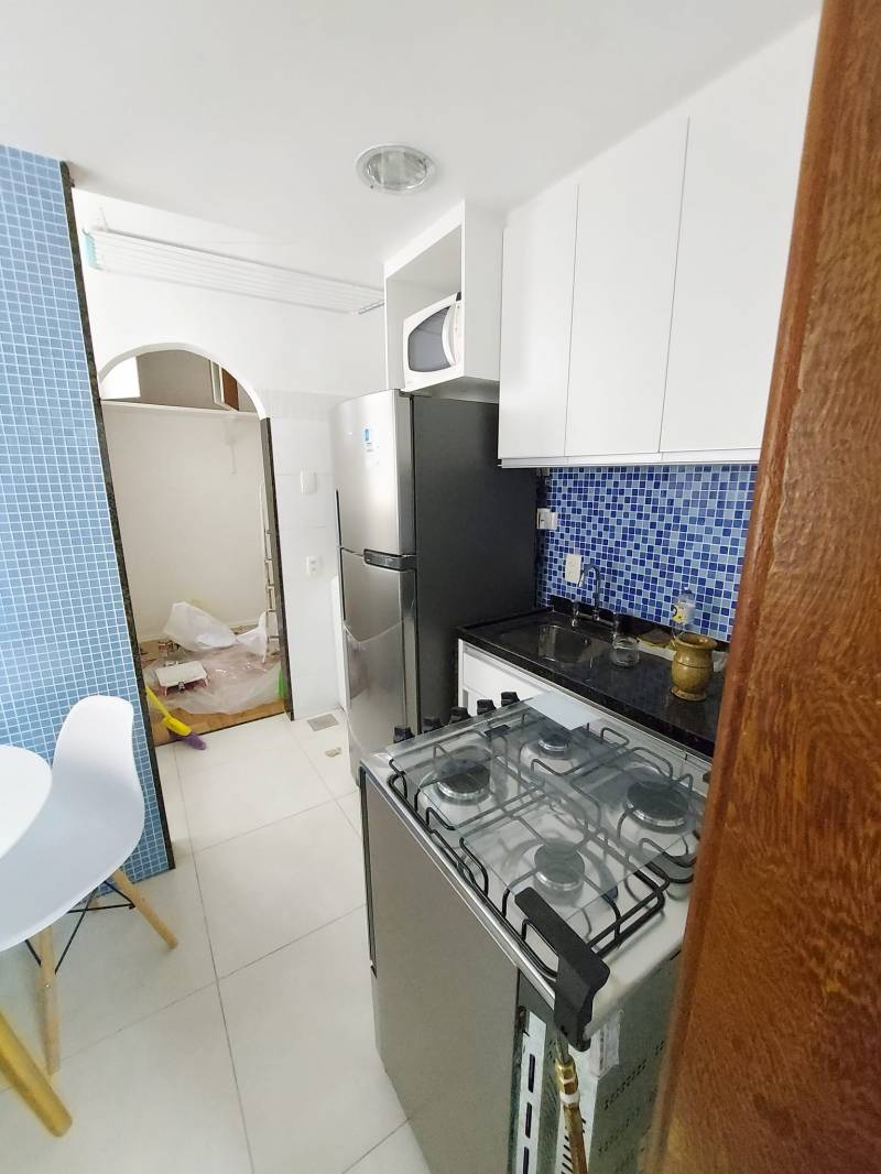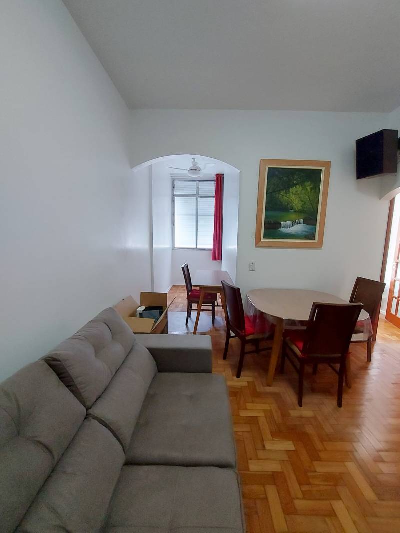 Sala com ar condicionado, sofá cama, mesa de jantar com quatro cadeiras, televisão 55 pol. quarto com ventilador de teto, cama de casal, armário embutido, cozinha com fogão, armario embutido, geladeira, sugar, área de serviço com tanque e máquina de lavar, banheiro com blindex lavabo, (armários embutidos dependência com armário cabe cama de casal. Esquina com a Rua Miguel Lemos Copacabana posto 5. Excelente localização: próximo ao metrô, Lagoa, praia, táxi, ônibus, restaurantes, padarias, farmácias, super mercado, um vasto comércio ao redor. Apartamento reformado