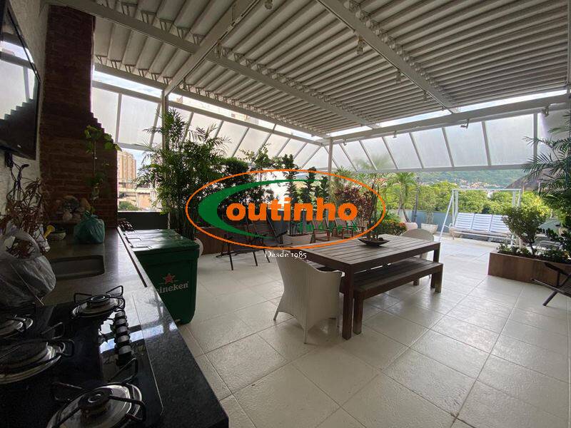 Descrições: (29818) Cobertura Linear, verdadeira casa supensa, lazer privativo e vista lindíssima para Colégio Militar e Pedra da Babilônia... terração com parte coberta e descoberta, espaço gourmet, churrasqueira, sauna, ducha e cooktop.