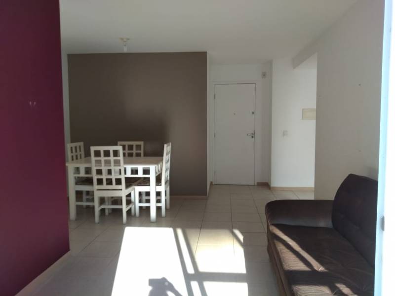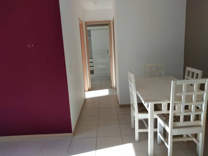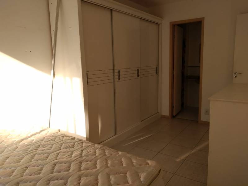 Apartamento possui cama de casal, guarda-roupa, armário, prateleiras, mesa com 4 cadeiras, sofá, fogão, armário na cozinha, suporte de madeira para microondas. Além de aquecedor para chuveiros, e ar condicionado em todos os cômodos: quartos e a sala.