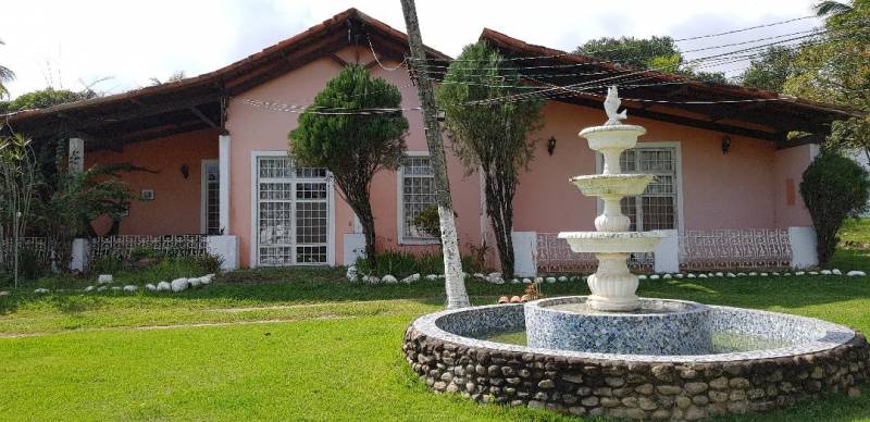 SITIO EM GUARATIBA casa principal colonial, com 4 quartos sendo 2 suítes com closet, sala de estar com 3 ambientes, sala de jantar, copa,cozinha, despensa, área de serviço, dependência para empregada, varanda e garagem cobertas. PARTE EXTERNA com piscina de 8 x 14m, cobertura tipo...